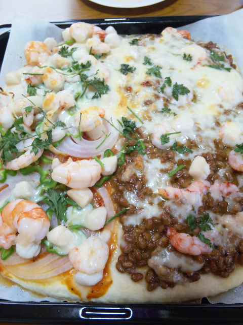 にまいめ〜シーフード&納豆カレーピザ\(^O^)/