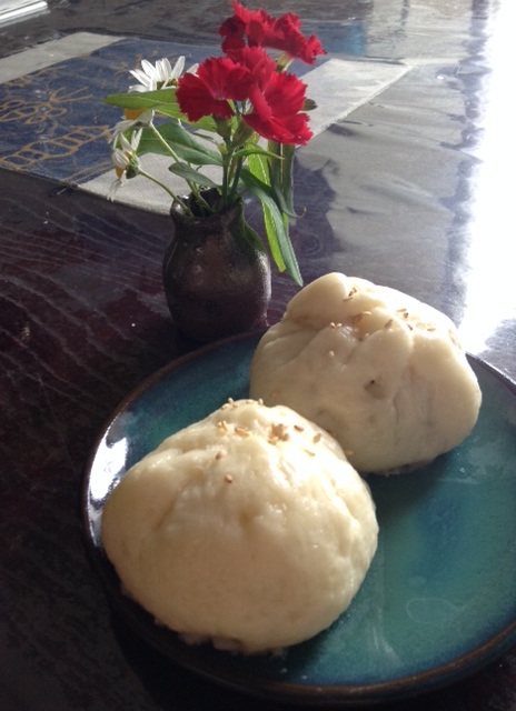 キャベツと春雨餡の水煎包焼いてみたぞ*\(^o^)/* からし醤油でうまま〜!