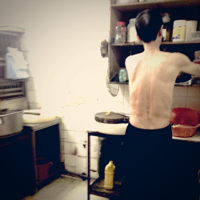 総菜屋のおっちゃんの筋張った背中(萌)