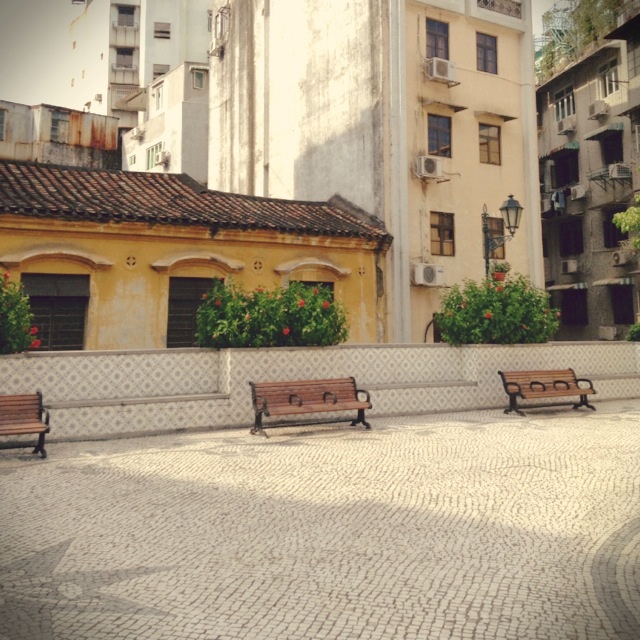 西洋風のタイル張りゆったりした広場