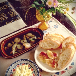 エビ牡蠣マッシュルームでアヒージョリベンジ〜帝国ホテルのバゲットサイコーーーや…