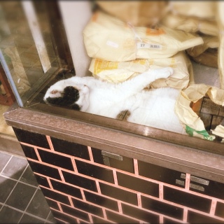 お店の窓のとこでにゃんめっちゃねてる のどか〜〜