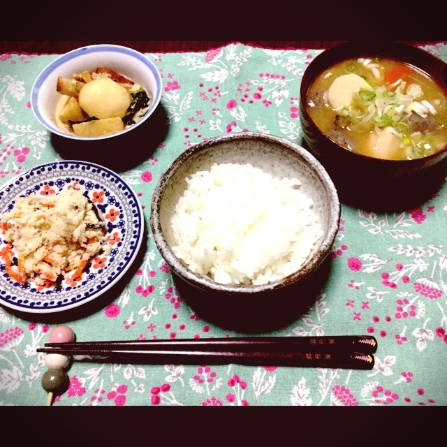 豚汁とカブのクリーム煮、卯の花はお惣菜で野菜マシマシメシ