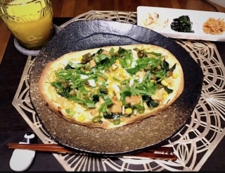 ピザの自我剥奪・冷凍ナン和風ピザ(インターネット飲み会のすがた)
