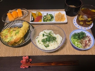 おそうめんと揚げ物(お惣菜)